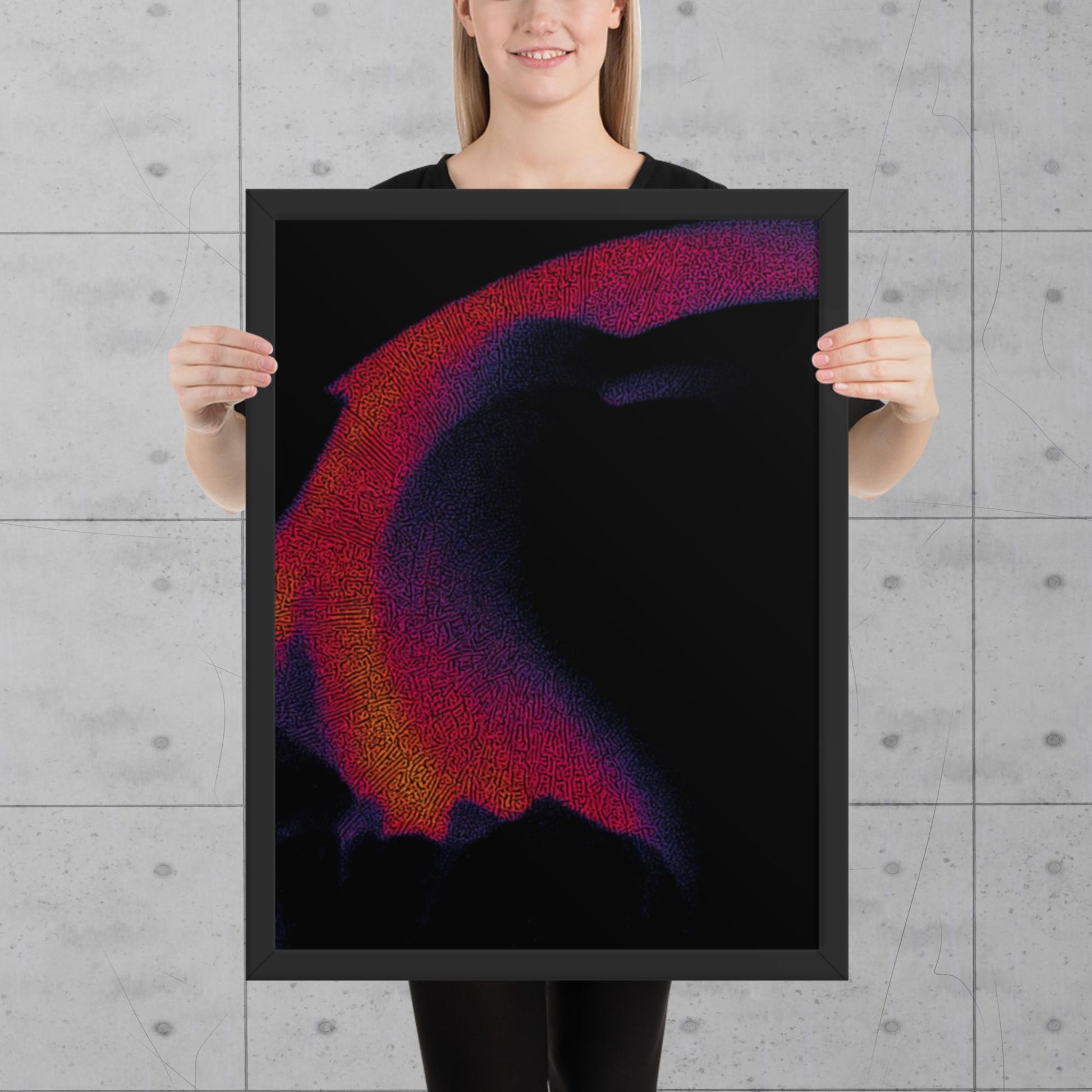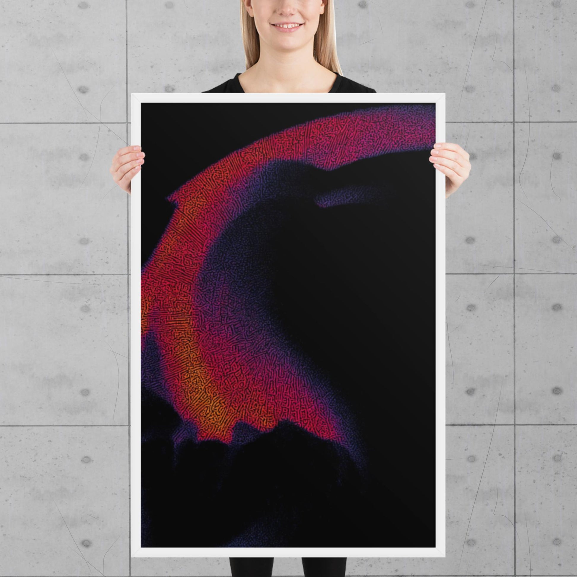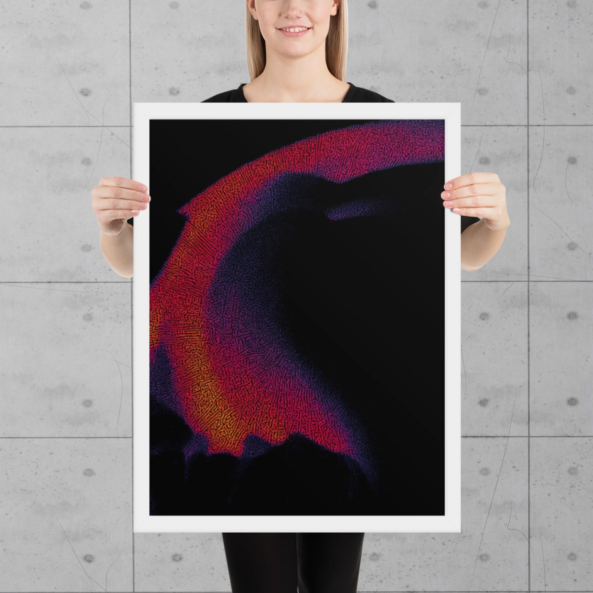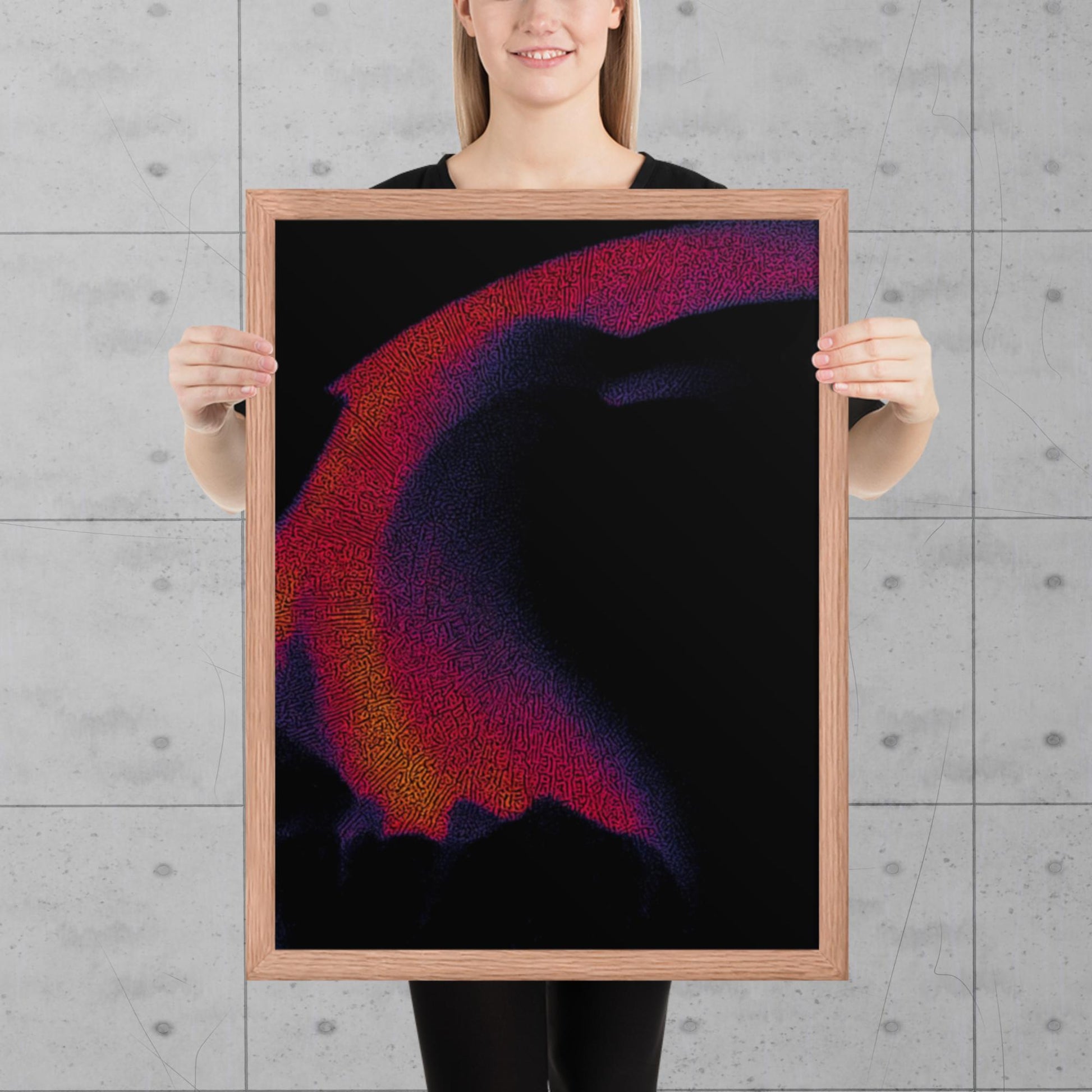 A burst of color and mystery merge in this abstract work that plays with light and shadow.
